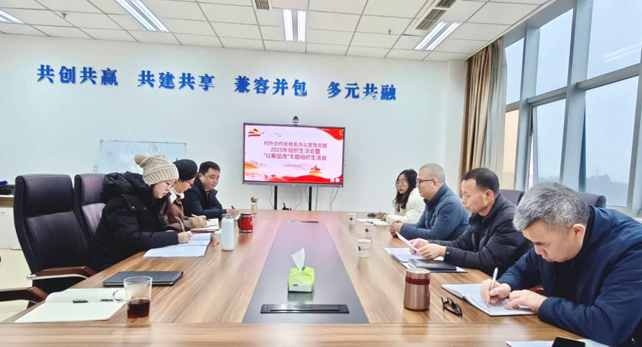 1月28日,对外合作处校友办公室党支部召开2025年度组织生活会暨“以案促改”专题组织生活会。会议深入学习贯彻习近平新时代中国特色社会主义思想,全面落实党的二十届四中全会精神,紧扣锲而不舍落实中央八项规定精神、推进作风建设常态化长效化主题。机关党委委员阮敏同志到会指导。